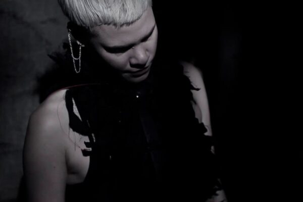 Film still from previous work Immunity. Looking this with fresh eyes makes me realise how much suffering hide in these imagery. A time before coming out as trans. You can feel the almost violent clashes of symbolism. Cold man made machine collides with the sensitive female beuty on this blurry collage.